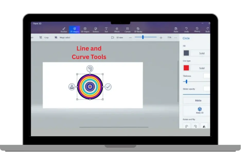 With paint 3D tool, you can draw and customize flat shapes. It is useful for creating diagrams, icons, vectors, and illustrations. A panel will open on the right side when you click the 2D Shapes icon, where you can choose shapes and adjust their appearance.
