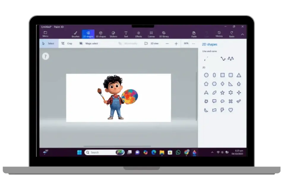 With MS Painting app, you can draw, and build Paint 3D models using simple tools like brushes, shapes, stickers, textures, and text. It also includes a built-in 3D library with ready-made templates for editing, resizing, rotating, and customizing your photos. These tools are so easy that even beginners can easily turn simple ideas into creative designs without needing any professional design skills or expensive software. Its clean, simple interface makes it easy for students, and content creators to start designing in minutes.